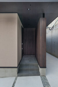 長く、奥行きのある造りで、日本家屋ならではの趣と風格を醸し出します。雨の日でも安全に荷物を運べるように、3段の緩やかなステップと屋根をつけました。
