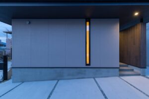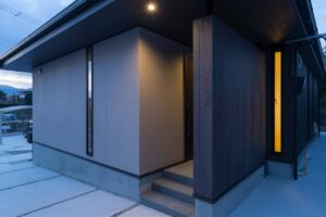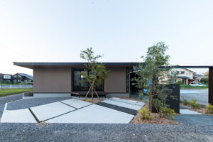 外壁の凹凸による陰影で、単調になりがちな平屋の外観を美しく演出。また、この凹凸があることで屋外からの視線も気にならず、