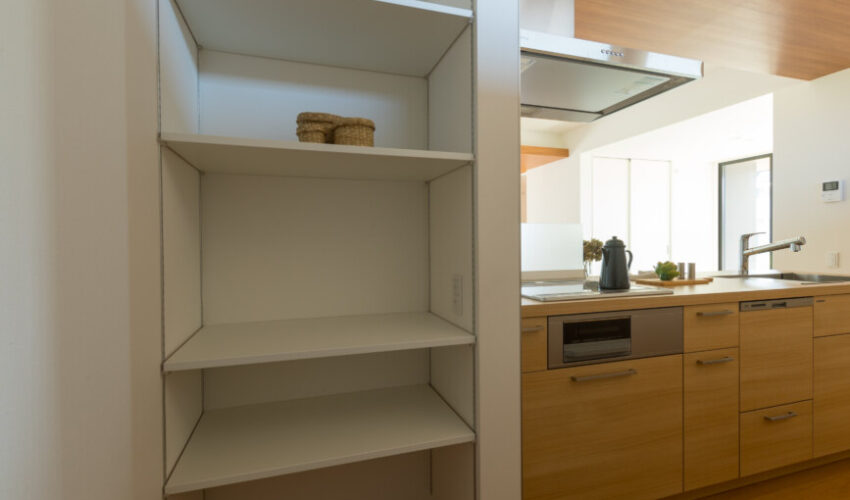 新米は玄米のまま、キッチン横のパントリーに保存。小さな精米マシンで、つきたてを楽しんでいる。そんなキッチン家電も、手作りの梅干しやらっきょうも、棚付きの広いパントリーなら置き場所に困らない。季節ごとの恵みを保存して味わうこと。子どもたちにも伝えたい。