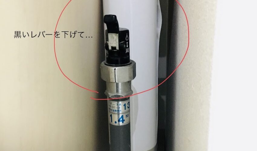 当社のひっそりと佇む水道の元栓はレバーを下げ、蛇口から水を出し切り、蛇口を閉めて完了です。予防はしていても、ほんのり暖かく部屋を保っていても・・毎朝・・